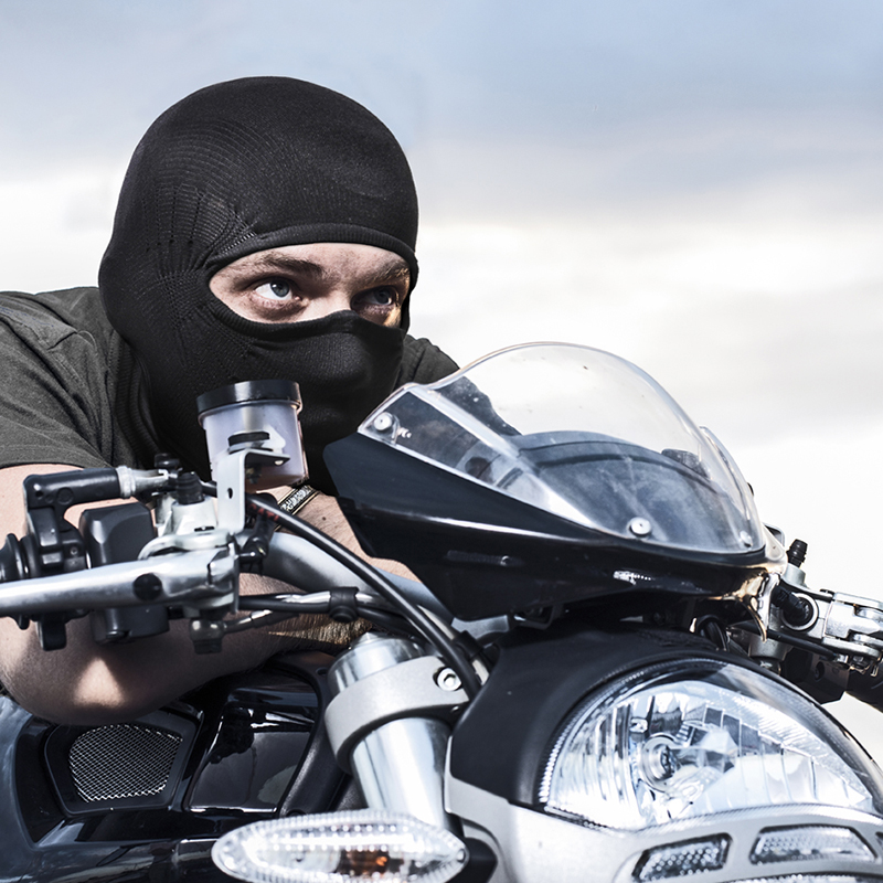 口元から耳、頭頂部分まで覆うフルフェイスバラクラバ(目出し帽)タイプのマスクです。